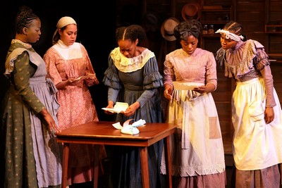 In the decades following the American Civil War, when employment for Black men in the South was scarce, an abundance of Black families were financially supported by the meager wages earned by women as laundresses. At the Atlanta laundry co-op that supplies the play's main setting, the process involves picking up dirty clothes from customers' homes, lugging heavy containers of water to be boiled, making lye soap, stirring the boiled clothing and linens with paddles, scrubbing them with washboards, wringing them out and hanging them to dry before pressing, folding and delivering back–usually picking up the next day's work right then. And while they may be proud to offer their services to Black doctors and speechmakers, their customers are primarily white families who have acquired the means to pay for the arduous, time-consuming but necessary task, but who lack the respect to pay these businesswomen in a timely manner. Smith's inspiration for the play was a trip to the Smithsonian National Museum of African American History and Culture in Washington, DC, where she learned of a mostly forgotten, but nevertheless landmark, episode in American history, Atlanta's Washerwomen Strike of 1881. Regarded as the first successful interracial, organized labor strike of the post-Civil War era, this demand for $1 compensation per dozen pounds of laundry, timed to coincide with the International Cotton Exposition, began as a small grass-roots movement among Black women that grew to over 3,000 members in weeks, including white women, who made up only two percent of Atlanta's laundresses. Before director Awoye Timpo's production for Woodie King Jr.'s New Federal Theatre at the 99-seat WP Theater begins, we see two onstage panels supplied by set designer Jason Ardizzone-West which display designer Abhita Austin's animated projections that resemble an abstract view of linens waving in the breeze. The soft, calming feel they provide is dissipated once the drama commences with a very effective, wordless montage choreographed by Adesola Osakalumi and Jill M. Vallery, which spotlights each of the five main fictional characters as they go through the grind of their everyday work. As they put their bodies through familiar paces, we hear the rhythmic soundscape of cloth grinding against washboards, voices grunting as they handle heavy objects, and the deep breathing that accompanies trying to stay mobile in the forceful Atlanta heat. As each woman is featured, projections identify them individually in displays that suggest storybook pages, or perhaps a museum display. There's Anna (Eunice Woods), the business-minded leader who is kept up nights worrying about how much longer she can extend credit to white customers who don't seem anxious to pay, and Jeanie (Bianca LaVerne Jones), the upbeat nurturer. They're the elders of the group and one might assume they performed these chores as enslaved women for most of the first half of their lives. Their younger colleagues include Thomasine (Margaret Odette), a mother of four in an abusive marriage, the optimistic newlywed Charity (Alicia Pilgrim), and ambitious student Jewel (Kerry Warren). At the conclusion of their labors, the actors turn the wheeled panels around, and we're in the realistically detailed living and working space of what the playwright describes as "a double barrel shotgun house, in Atlanta's Fourth Ward." It's a simple bit of theatrics, but it effectively emphasizes history's reality that inspires the playwright's storytelling. "The city tryna to push Negroes who own property out the Fourth Ward," concludes Anna when her property taxes are raised. "Talkin' 'bout some Cotton Expo gonna bring more railroad tracks, factories, and thangs. I can't keep up with the taxes. Got a letter that say if I don't have 'em paid soon, I'll lose this place." In Smith's fiction, this is the personal matter that sets the idea to organize a city-wide strike of washerwomen in motion. At first it's a movement exclusively among Black women, as information is passed on through whispers. But when newspaper headlines begin villainizing these workers and small business owners, unexpected support comes from a white laundress named Mozelle (Rebecca Haden), who says she can recruit many more white laundresses who are suffering the same kind of mistreatment. Although you can sense the initial mistrust of Mozelle, history tells us that the leadership of Black women in this movement wasn't compromised. An interesting aspect of the production is that, despite their difficult manual labor in abusive heat, costume designer Gail Cooper-Hecht has the women always dressed neatly and attractively in long shirts, high collars, and full-length sleeves, emphasizing the importance of a clean appearance when trying to gain public favor. Though the play delves a bit into the personal lives of each character, they're drawn out more as representations of different types, with the actual events of the strike providing the main narrative. While I found the play most enjoyable for its educational aspects, and to admire the commitment of the fine acting ensemble, this was one of those situations where this white male theatregoer noticed very few people who looked like him in the audience, and much of the evening's excitement was supplied by hearing the loud responses of the abundance of Black women in the theater and feeling the connections they were making with both the actors and the characters they portrayed. A reminder that attending theatre created by other cultures is one of the best paths to bonding and understanding. The Wash Through June 29, 2025 New Federal Theatre WP Theater, 2162 Broadway Tickets online and current performance schedule: NewFederalTheatre.com