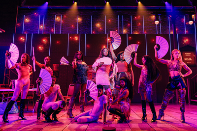 The plotting mirrors the movie's closely, but the songs, as songs in a solid musical will, amplify the emotions and let the cast shine. "Five Minutes Away" is Rose's affecting memory of her closeness with her late brother; one wishes Kalukango had more to sing. (Cardasis does add a backstory, missing in the film, that helps explain why Rose is so tough on Ulysses.) "Wrapped in Cellophane" catches Ulysses at his most vulnerable moment, out on the street, and leaving us anxious over how he'll find his way home. There's eventually a ball, of course, with one faaaabulous Qween Jean frock after another, and Ulysses resplendent in a gown that needs to be seen to be believed. And a word must be said for Dhairius Thomas, whose wig and hair design not only dazzles, but inspires the funniest line in the script. Quibbles? Some. Under Whitney White's mostly astute direction, the chorus appears and disappears at illogical junctures. We know Saturday Church is on Christopher Street, but we'd like a stronger sense of what neighborhood–heck, what borough–Ulysses is being raised in. Ghee, also playing Ulysses' stern, traditionalist Pastor Lewis, doesn't seem as invested in it as they are in donning Black Jesus's silver gowns and two-foot-high sparkling red boots. Amara and Ebony meet in a subway car holding just the two of them, where they bond without knowing who the other is–unlikely, much? David Zinn's set is basic, mostly brick walls and platforms, with two benches unpersuasively portraying that subway car; it's helped by Adam HonorĂ©'s vibrant lighting. And while Qween Jean's fashions are stunning, a practical question: Even if they're supposedly homemade, how does this bunch afford the material? But you know what, I'm done complaining. Saturday Church generates an LGBTQ pride and radiance that hasn't been felt theatrically since Cats: The Jellicle Ball, with which it happily shares some visual and attitudinal outrageousness. It would surely scandalize the MAGAs if they were brave enough to venture to NYTW, which I doubt they are. Its messages of inclusion, affirmation, and the merging of adopted and natural families into a unified, supportive whole is so positive and, in these times, so needed. Even if you're not particularly into drag (I'm not) or don't totally understand the trans community (I don't), you head out of NYTW with Black Jesus' words reverberating: "Can I show y'all what collective love looks like, what collective joy looks like, what collective healing looks like?" That's what we get. Take that, far right! Saturday Church Through October 19, 2025 New York Theatre Workshop 79 E. 4th St., New York NY Tickets online and current performance schedule: NYTW.org