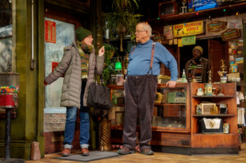 The action takes place over a handful of days as Pete, once the owner of more than a dozen TV and video stores around the city and the legendary star of local commercials for said stores, works on the speech he's been asked to give after accepting a small business award from the mayor. His daughter, Sam, and son-in-law, Mike, are in and out of the store, helping him both with preparations and the everyday running of Pete's sole remaining store. Also in the mix is Jess, the much younger woman who, along with her two small children, has been living with Pete for the past three years. Everyone in the story has their secrets. Pete hides the tension in his complicated relationship with Jess out of a desire to sidestep Sam's judgement, as well as her legitimate concerns. Sam has inherited her fair share of the familial tendency toward avoidance, as she continually puts off telling Pete that she and Mike have made some haphazard but definite moves toward pulling up stakes to head for Los Angeles. Jess, for her part, masks her plans to reunite with the father of her children, Charlie, who is fresh out of rehab and living in the suburbs. In another kind of play, these secrets would have dark and terrible undercurrents. They would erupt in the play's bleak and edgy final moments. Ashland Avenue is not that kind of play. It is something altogether more refreshing. That's not to say there isn't darkness here. Pete, the consummate salesman, has managed to bind both Jess and Sam to him in ways that clearly have negative consequences for the growth and self-sufficiency of both women. And in some sense, the affable, malleable, and occasionally clueless Mike is the kind of partner that Sam, having trained at the feet of the master, would obviously draw in. But no one is evil here, and no one (not even Charlie, who appears at the play's end) is unchanging or irredeemable. But neither is the play some kind of glib affirmation that when a door closes, a window opens. It's a hard play and a subtle one. It requires patience, then pays it back, and it does so beautifully. The production design is top notch, providing a worthy setting for the work. Kevin Depinet's set absolutely nails the interior of the video store with its vintage sets mounted around the space, its souvenir "store closing" signs from Pete's bygone locations, and most of the contemporary flatscreens consigned to the upper-left part of the stage. Downstage left is an eclectic "front room" area that features comfortable, stylish yet mismatched chairs, a wide, low coffee table, and a break room-style coffee station and microwave behind the seating area. The entry to the store, as well as the sales desk and shuttered entrance to the back office occupy stage right. Depinet not only skillfully captures Pete's cannily designed store, the set conveys how fully the store is the real home that Pete and Sam have always occupied. Jason Lynch's lighting is also perfect. It conveys the wee hours outside the shop's showcase window, even when characters are inside the space burning any of the millions of different lights that have accumulated in the store over the decades. Similarly, the sound design and composition by Lindsay Jones maintain the vibe and impressively tight and subtle tonality of the show. Finally, Jessica Pabst's costumes powerfully evoke Chicago in February and tell us about each of the characters without ever devolving into stereotype. Sam's jeans, boots, and multicolored sweaters are an informative contrast to Jess's sweats and short puffer jacket, without being intrusively overt about how the two women are different. Pete's suspenders, his hoodie, and his shapeless pants, as well as the good blue suit he wears for the speech, tell us the story of his rise from nothing to the guy who used to feature in the St. Patrick's Day Parade to his decline along with that of his line of work. But the real magic is in the performances. Francis Guinan is every inch the charming, overbearing, irascible, and manipulative patriarch. He is a good man who is doing the people in his life very little good in a rapidly changing world. In any moment that the play felt slightly overlong or overwritten, Guinan reliably rescued and justified it. Kirk has written an astounding, realistic role here and Guinan inhabits it at every turn. The character of Sam is not entirely as steady and successful as that of Pete, at least at the beginning of the play, but Jenna Fischer breathes life and interest into some of the shakier material, in addition to fully realizing the stronger moments later in the play. She has wonderful chemistry with both Guinan and Chiké Johnson (Mike), and although the play brings Jess and Sam together only briefly, the two women also do great work shedding light on one another's characters. Johnson is delightfully upbeat and charming as Mike, without ever letting the character devolve into caricature. His willingness to go with the flow is a part of the character's charm, but the subtlety with which Johnson plays the role makes it clear that this passivity is, if not directly part of the problem, one reason why the troublesome dynamic between Pete and Sam has drifted along. Cordelia Dewdney's work as Jess is also strong. The relationship between Jess and Pete is, to say the least, unexpected, unusual, and genuinely complex. Although Kirk writes this with skill, it's the dynamic between Dewdney and Guinean that makes this unique story jump from the page. Will Allan's role as "Young Man" is limited, but critical to the show's strong and satisfying ending. Allan has little time to build up an important character, but he does so with commendable skill. Ashland Avenue has been extended through October 19, 2025, at the Goodman Theatre, Albert Theatre, 170 N Dearborn Street, Chicago IL. For tickets, please visit GoodmanTheatre.org or call 312-443-3800. |