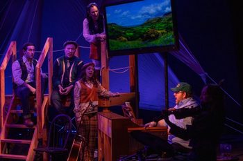 What, you say? You thought mistreating immigrants was a modern thing? Nope: for a country whose iconic Statue of Liberty features Emma Lazarus's immortal "The New Colossus,"–its famous words, "Give me your tired, your poor, your huddled masses yearning to live free," are quoted in the play–we have not exactly rolled out the welcome mat for most of the peoples who have come here from overseas. The Irish were a prime example of this, and the play doesn't pull its punches about that, showing us a projected collage of "No Irish Need Apply" job ads (created by lighting and media designer G. "Max" Maxin IV) that proliferated wherever the Irish immigrants moved in. When I tell you that this play also contains an extended section about the horror that was the Potato Famine, in which the failure of that specific crop, the staple of the Irish working class–along with the fact that the English continued to take everything else–killed a full quarter of the island's population, you might think that this is indeed a history lesson, and a dark and ugly one at that. You'd be wrong. The Irish is a celebration, not a dirge, though the Irish do traditionally blend the two a lot: there is a scene here satirizing Irish wakes and many examples of folk songs derived from some sad event or another. Sung and danced by a very talented quartet of actors (Michael Mahler, Leah Morrow, Emily Goldberg, and Luke Nowakowski) backed by Elleon Dobias on violin and music director David Fiorello–who also sings a lovely and plaintive "Danny Boy"on piano, the music here is a mixture of the vibrant and convivial with the melancholy and doleful: in other words, Irish music. For every fun and silly "Who Threw the Overalls in Mrs. Murphy's Chowder," there's a heartrending "The Fields of Athenry," about a young man forced to leave the country and his sweetheart on a prison ship. Of course, there was also the great Irish showman George M. Cohan, who gets a well-deserved four-song salute here with his celebratory and often patriotic pieces like "Give My Regards to Broadway" and "Yankee Doodle Dandy." And the penultimate moment in the play is a tribute to all of the (many) U.S. Presidents of Irish descent, especially John F. Kennedy. The 19th century anti-war song "Johnny I Hardly Knew Ye" is used here with another visual collage (this time images of JFK and his family) as a memorial. U2's "I Still Haven't Found What I'm Looking For" closes the show, a "song that celebrates wanting," as Bono once described it, its lyrics of continued searching even though the singer has not yet found his aim highlighting the Irish tenacity, faith, and hopefulness that is as much a part of their national character as the drinking and fighting that the show also does nothing to downplay. Girolmo had plenty of excellent help here. Tianxuan Chen's sparse set, backdropped by sails that indicate the immigrants' journey and act as a screen for projections, allows for multiple varied performance levels as well as an open central space for dancing. Maxin's lighting perfectly complements every scene, and Matthew R. Chase's sound design is crisp and clear. The costumes, too, are excellent: Alexis J. Roston clearly had some fun with them. With the outrages of Minneapolis still going on, it's good to spend an entertaining evening reflecting on the fact that this country was founded by immigrants as well as those who were already established here, and the vast majority of us trace our lineages back to those intrepid men and women who, not knowing what awaited them on the other side, left their native shores and sailed to America. McCourt's show is about one of these groups, but it's also a reflection of all of them. The Irish... and How They Got That Way runs through March 15, 2026, at Porchlight Music Theatre, The Ruth Page Center for the Arts, 1016 N Dearborn, Chicago IL. For tickets and information, please visit porchlightmusictheatre.org |