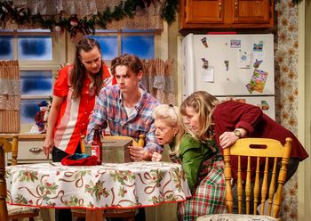 Watching the Nowak family convene in a disjointed family meeting at the Christmas holiday and evolve from a mundane agenda to one with much deeper emotion and meeting is a peek at a microcosm in their kitchen, beautifully styled by Bob Knuth (scenic) and Ellen Markus (props). The set and costumes (Danielle Reinhardt) lend a credibility and nostalgia to the whole show.