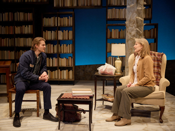 The Sound Inside commences with Bella Lee Baird (Annie Fitzpatrick) striding down ETC's center aisle and proceeding on a ramp up to the bookcase-backed stage fronted by a glistening, chilly white marble floor and some modest but elegant wooden furniture. An abstract tree at stage left looks white and frozen. Bella notes that snow has come early to New Haven, a mention that has further implications in the story. She introduces herself, almost as if she is a character in a novel. In fact, Bella, age 53, never married, is a Yale professor of creative writing. She teaches a course for aspiring writers, "Reading Fiction for Craft." She confesses how she recently suffered severe abdominal pain requiring surgery that revealed stomach tumors; her oncologist has told her she is already at Stage Two of metastasis. After that startling revelation, Bella dodges back in time to an encounter with Christopher Dunn (Rupert Spraul). A few days earlier during a class discussion of Dostoevsky's "Crime and Punishment" and its murderous but ambiguous protagonist, Raskolnikov, Dunn blurted out to her and his classmates, "Someday I'm going to write a moment like that." He stops by her office unannounced for a conversation that is as much narrated by Bella to the audience as it is enacted. He wants to tell her that he likes her course, but he's a curious blend of audacious outspokenness and distracted awkwardness. But he also demonstrates the vocabulary of a prodigious reader and writer. His visit is actually to share with her that he intends to write a novel. He begins to sketch it out for her with story elements that seem forebodingly personal. A strange tension–even attraction–evolves between teacher and student, more intellectual than physical although there's a whiff of that, too. Rapp's story about writers in many ways is more literary than theatrical, with constant direct address to the audience. His script lacks moments of demanding physical action. Instead, thanks to the way the characters speak their thoughts and describe how things have unfolded, it's as much about thought and analysis as decisive action. We go inside the characters' minds, especially Bella's, whose own writing career has stalled since her first novel received a less than enthusiastic greeting years before. She is intrigued by this precocious young man and does not quite know what to make of him. She personally undertakes a writing exercise that she routinely assigns to students: Write for 20 minutes without lifting your pencil from the paper. Without fully understanding why, she fills an entire page with the words "Listen to the sound inside." She is mystified as to what inspired this, but it becomes obvious that both she and Christopher need to seek out and respond to interior thoughts and motives. The Sound Inside offers psychological and moral conundrums that unravel in complex ways. Bella's cancer diagnosis causes her to ask Christopher to assist her with a difficult task. That prompts further soul searching and more stories within the story and possibly toward some subsequent conclusive action. The play is a masterful piece of writing that requires actors of considerable skill. Fitzpatrick, a stalwart, longtime performer at ETC, has never been more admirable or convincing in a role. We see beyond Bella's confident, self-deprecating veneer and understand why she has been stalled in life. Spraul, in his ETC debut, is a young talent who has appeared recently in several impressive ways on other local stages. He convincingly conveys Christopher's brashness and talent but also his need for assurance. Rapp's script demands sensitive direction, and that's clearly been provided by Brian Isaac Phillips, stepping away from his day job as the artistic director at Cincinnati Shakespeare Company. (Phillips began his theatrical career as an acting apprentice at ETC.) He has kept Fitzpatrick and Spraul tightly focused on their portraits and given them a deliberate pace that allows their words time to sink in with audiences during this 90-minute performance. The delicate dance of moral requests and personal self-exploration between them is all the more impactful thanks to Phillips's management of the tale. The play's ambiguous outcome will surely lead to questions and conversations about what has happened. Suppositions are offered, but no clear answers. Christopher's novella, shared with Bella, employs as an epigraph a line by Dostoevsky from "Crime and Punishment": "We sometimes encounter people, even perfect strangers, who begin to interest us at first sight, somehow suddenly, all at once, before a word is spoken." That's how Rapp's unlikely pair begin and how audiences will be captivated throughout this powerful, mysterious story. The Sound Inside runs through April 27, 2025, at Ensemble Theatre Cincinnati, 1127 Vine Street, in Cincinnati's Over-the-Rhine Neighborhood, Cincinnati OH. For tickets and information, please visit www.ensemblecincinnati.com or call 513-421-3555. |