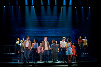 The Notebook is based on the 1996 novel by Nicholas Sparks, which was also adapted into the popular 2004 film. Like those versions, the musical focuses on Noah and his wife Allie, who are now living in a retirement home. Allie suffers from dementia and Noah reads to her from her notebook, which chronicles their life, with the hope that it will help her remember who he is. As Noah tells the story, the audience is introduced to two other versions of Noah and Allie, one when they meet as teenagers, and another ten years later when they reconnect after losing contact. The show played on Broadway in 2024. The book by Bekah Brunstetter uses a mix of narration, flashbacks, exposition, and active scenes to convey different moments and aspects of the love story between Noah and Allie. The dialogue feels authentic and there's sufficient humor sprinkled throughout. The romantic overtones are present in droves, but it's not heavy-handed, and the piece emphasizes love over schmaltz to keep it from being overly sappy or superficial. The themes of time and memories are established early on and sustained throughout, and the motivation behind the telling of their story is strong. The setting is updated to start during the Vietnam War, with the older couple's scenes taking place in current times, and resembles the novel's plot more so than the film. One problem with the story is that the audience generally knows what happens in the end, so any conflict or related dramatic tension seen earlier in the timeline is muted by knowing the eventual outcome. Fans of the Broadway production should be prepared for a slight change to the ending which makes it somewhat more audience friendly. Indie-pop recording artist Ingrid Michaelson provides the score for The Notebook. While the music matches the passionate tone and folksy setting of the show, it differs from typical musical theatre conventions in many respects, often sounding more like pop songs than a theatre score. The lyrics too frequently use false rhymes and tend to describe emotions or the situation rather than propelling the plot forward. The songs are tuneful, but true theatre aficionados may find it somewhat lacking. Score highlights include the hopeful and highly melodic "Carry You Home," "I Wanna Go Back," a contemplative duet sung by Middle and Younger Allie, and "My Days." Three actors portray Noah and three portray Allie, each at a different age. Beau Gravitte (Older Noah) fervently embodies the devoted and protective long-time husband. Sharon Catherine Brown demonstrates versatility and nuanced acting as Older Allie, conveying the ever-changing feelings of someone battling dementia. As Younger Allie, Chloë Cheers captures both the prim properness and the exuberance of a teenager falling in love, and shows off lovely vocals. Kyle Mangold is funny and fittingly eager as Younger Noah, and likewise is an excellent singer. Ken Wulf Clark (Middle Noah) is aptly conflicted and rugged, and sings well. Alysha Deslorieux impressed local audiences fifteen years ago as a student at University of Cincinnati College-Conservatory of Music (CCM) and returns here as Middle Allie. She expresses the stoic woman with life-changing decisions to make with aplomb and provides a vocal masterclass with "My Days," which received mid-song applause from the audience several times on opening night. The ensemble members showcase great skill in multiple roles and supply off-stage vocal support expertly. Co-directors Michael Greif (Rent, Next To Normal) and Schele Williams (The Wiz) provide fluid blocking, apt pacing, and the tender and emotional tone that is required for the piece. Having both a male and female perspective is a good idea for the direction, and it results in a well-balanced perspective on the story. The very limited choreography by Katie Spelman is well suited. Musical director Tina Faye leads a great sounding eight-piece band. The handsome scenic design by David Zinn and Brett J. Banakis features a set with wooden slats and rafters which, along with other pieces, represent the many settings of the piece, including the nursing home, the house that Noah builds, and the dock and lakeside where the couple originally meet. The water elements add a bit of excitement to the proceedings as well. Paloma Young's apt costumes provide a consistent color palette for the main characters, with all three Noahs in brown and all three Allies in blue, which helps to clarify the back-and-forth transitions in time and switching of performers. Ben Staton's lighting includes attractive hanging vertical fixtures and the use of shadows is incorporated well. Ingrid Michaelson will be performing with the Cincinnati Pops on October 21st, which is during the run of this tour. It's likely she may even be attendance at one of the performances of The Notebook when in town. The show is solidly crafted and presented, and is probably exactly what it needs to be for fans of the novel or film. A first-rate cast and strong design elements are positives as well. The score isn't your typical theatre fare, but does match the emotions of the piece. It's just that several other modern musicals such as The Bridges of Madison County and Maybe Happy Ending have conveyed such emotions and sentiments more skillfully in song. The Notebook runs through October 26, 2025, at the Aronoff Center, 650 Walnut St., Cincinnati OH. For tickets and information, please call 513-621-2787 or visit cincinnati.broadway.com. For information on tour, visit notebookmusical.com/ustour/. |
