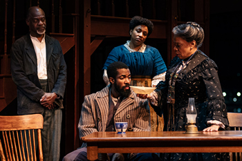 Gem of the Ocean first appeared at the Goodman Theatre in Chicago in 2003. Wilson wrote the play late in his life; he passed away in 2005. The action takes place in the Hill District of Pittsburgh in the home of the aged Aunt Ester Tyler (Denise Burse). She evidently has, for many years, taken in people who are in need. Her house is a sanctuary and she runs it with a firm hand. Eli (Thomas Silcott) is her protector, while Black Mary (Grace Porter) is a housekeeper and cook. Terrence Riggins plays Aunt Ester's friend Solly Two Kings, and Caesar Wilks (Bjorn DuPaty), Black Mary's brother, is a constable. Rutherford Selig (Mike Boland) is a peddler on stage briefly while Citizen Barlow (Matthew Elam) is a focal point of Wilson's plot and theme. Barlow hopes Aunt Ester can cleanse his soul since he has heard that she has spiritual powers. He is anxious about his own existence and soul. Just before intermission, we learn that the steel mill is on fire. During the second act, a belligerent Caesar comes to Aunt Ester's whereupon Solly utilizes his walking stick to slam Caesar in the knee which temporarily disables him. When Caesar recovers, he sets out to find Solly and then shoots the man. Solly was once a slave and is known to have to be of great service to people within his community. Previously, he was also a conductor the underground railroad and he has adored Aunt Ester. Caesar, from his first appearance and throughout, is hot-headed and ready to explode. This is evident during a solo sequence as actor Matthew Elam takes the spotlight with an aggressive, dynamic delivery which fuels a red-hot, dazzling acting sequence. Caesar urges that people respect the law and his fury is unrestrained. For his part, Citizen Barlow is haunted by his cowardice and deception. Aunt Ester originally took a liking to him because he reminded her of her husband. Somewhere during the second portion of the production, she hands Citizen a paper boat which symbolizes a larger Gem of the Ocean boat. This could take him, with Aunt Ester's direction, to the City of Bones. It is there that Citizen might learn about oppression and even of his own spiritual past. August Wilson's plays are challenging, and live performance animates his words. The playwright's ability to write realistic dialogue remains unsurpassed. Hence, it is not surprising that during the lengthy first act, he is expository with the introduction of characters. Director Barboza and the ensemble group of performers speak both to the audience and to themselves. On opening night, DuPaty's performance as Caesar Wils drew deserved applause during a solo speech. Terrence Riggins' Solly Two Kings draws sympathy even before his confrontation with Caesar. One understands that Solly has been a champion of the oppressed for many years. Black Mary, at first, seems to be a part of the household but we later find her to be contemplative and strong. Grace Porter builds her character to a crescendo. Within the scope of the smashing Long Wharf rendering, Denise Burse, playing Aunt Ester, is quite competent and somewhat subdued. This could be actor or director or a combined actor/director choice. In any case, the performers and creatives involved with this depiction present an absolute jewel of a show: call it a gem. August Wilson's work remains thrilling to behold. Long Wharf Theatre's Gem of the Ocean rums through March 15, 2026, at the Canal Dock Boathouse, 475 Long Wharf Dr., New Haven CT. For tickets and information, please call 203-693-1486 or visit longwharf.org. |