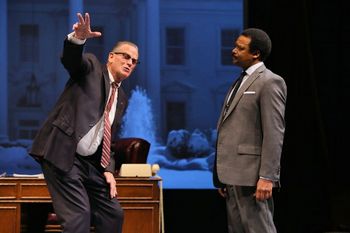 The Guthrie has mounted the play, whose full title (I'll only mention it once) is The Nacirema Society Requests the Honor of Your Presence at a Celebration of Their First One Hundred Years, impeccably directed by Valerie Curtis-Newton in a howlingly funny production. It is part comedy of manners, part cross-generational comedy, part romantic comedy, and part social satire. Its historic baselines give the hearty laughter roaring across the aisle a sense of consequence, for we laugh not only at Cleage's effervescent writing, but at the irony of its context within that place and time in history. Nacirema is "American" spelled backwards. It was coined by American anthropologists wanting to look more objectively at their own culture, first appearing in 1956 in a satirical anthropological paper called "Body Rituals Among the Nacirema." Cleage has used the word as the name of a fictitious legacy society of prominent African America families in Montgomery, Alabama, going back to the Civil War. The exclusivity and propriety of the Nacirema Society is represented by Grace DuBose Dunbar and Catherine Adams Green, who trace their families' membership back to its founding. These two pillars of the society are portrayed by Greta Oglesby (as Mrs. Dunbar) and Regina Marie Williams (as Mrs. Green). If the play were nothing more than a series of conversations between these two exquisite actors, immersed in their delicious characters as they finalize plans for the upcoming Nacirema Cotillion, which will commemorate the society's centennial, it would be reason enough to rush to the Guthrie for tickets. Grace and Catherine, now both widows, are as close–and as quarrelsome–as sisters. They have long harbored the hope, or for Catherine, the expectation, that her grandson, Bobby (Darick Mosley), and Grace's granddaughter, Gracie (Nubia Monks), will marry, thus carrying the bloodline of the two august families into a new generation. Gracie has no interest in marriage. She wants desperately to become a writer and, to that end, attends college in New York City, though her grandmother expects her to go to Fisk, the historically Black university in Nashville that all Nacirema's young people attend. As for Bobby, now in medical school (it appears that many of the Nacirema men have been physicians), he is deeply in love with a fellow student with whom he went to Greenwood, Mississippi last year to volunteer on the voter registration drive. However, owing to the closeness between Gracie and Bobby's families, they grew up feeling like brother and sister, and their ease with one another is taken as a sign by their meddling grandmothers that theirs is a match made in heaven. Layered upon this, a voice from the past appears: Alpha Campbell Jackson ( Aimee K. Bryant), the daughter of Lillie Campbell, who worked as the Dunbar's maid for forty years up until her death. Alpha has come down from Harlem with urgent news for Grace Dunbar–news that is bound to stir things up in a most unwanted way. Her timing is terrible, with the cotillion days away, as well as the arrival of Janet Morgan (Joy Dolo), a well-known Black reporter for the New York Times who usually covers the civil rights movement, but has come to do a story about the Nacirema Society and its centennial cotillion. For Grace and Catherine, this is an opportunity to impress Blacks in the Northeast with the level of sophistication enjoyed by their Montgomery brethren, and they don't want Alpha's business gumming that up. Meanwhile, would-be writer Gracie is star-struck by the presence of one of her idols, Janet Morgan, as a house guest in her home. Also embroiled in the mayhem is Marie Dunbar (Dedra D. Woods), Grace's daughter-in-law and Gracie's mother; Alpha's daughter Lillie (Essence Renae), a student and activist who is appalled by her mother's scheme; and Jessie (Charla Marie Bailey), the Dunbar's maid who replaced Lillie. The entire cast is phenomenal, with Monks, Bryant, and Renae rising to the vaulted level of performances given by Williams and Oglesby, and the others–Dolo, Mosley, Woods, and Bailey only a half step behind. Jessie, the maid, never says a word. She always appears exactly when needed, taking coats from arriving guests and returning said coats when they leave, dusting lamps, watering plants, ready with food or drink the moment it is desired, and so on. While she is treated like a non-entity, she sees and hears everything that goes on–a few choice facial expressions and gestures let us know that she pays attention. We can surmise that the same was true of her predecessor Lillie, whose daughter is now poised to upset the household. The production is not only sprightly staged and brilliantly acted, but it also looks amazing. Takeshi Kata's stage design places all three of the play's settings on the thrust stage at the same time, with Mary Louise Geiger's lighting design making transitions from one to another quite seamless. Holding center court is the Dunbar home's gracious living room, decorated in a manner that attests to old money. A royal blue tufted sofa and club chair provide its anchor, and an elegant white staircase curving upwards toward the home's second story creates an alcoved entry. Halfway up that staircase, behind the living room, is the library, with its substantial desk and a wall of bookshelves arranged around an oversized portrait of the late Dr. Dunbar. In front of the Dunbar living room, on the tip of the thrust stage, is the humble kitchen in what had been Lillie Campbell's house, which remains the property of her family, and where Alpha, come from Harlem, and Lillie, home from college, are both staying. Then there are the lavish costumes designs by Trevor Bowen. Right at the start we see Gracie being fitted in her archly fussy white cotillion dress. Grace Dunbar and Catherine Green show off an array of fashionable outfits, and the gowns they wear for a simple dinner party draw entrance applause. Not only Bowen, but th