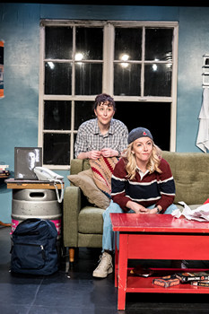 Matt and Ben's careers and friendship have been intertwined since then, including the years after they became college dropouts living in Sommerville, a Boston suburb, scrambling to go to auditions and launch those dreamed-about acting careers. They famously hit pay dirt in 1997 with the release of the film Good Will Hunting, for which they shared the 1998 Academy Award for best original screenplay, and in which they both starred. In 2002, a young aspiring writer/comedienne with a big future of her own ahead, Mindy Kaling, and her friend and fellow aspiring writer/comedienne Brenda Withers thought it would be a lark to write a play about Matt and Ben in those early salad days, two Red Sox fans eating day-old pizza who suddenly find themselves in possession of, as if out of thin air, a brilliant screenplay, with acting roles for both, that will transform them in a flash into A-list celebrities. It's as if a genie escaped its bottle and granted them their wishes. Too good to be true, right? That's the gist, more or less, of the play they wrote and submitted to the New York Fringe Festival in 2002, where it was a hit, going on to an Off-Broadway run. If the conceit wasn't already rife with potential, Kaling and Withers added one more hitch: they stipulate that Ben and Matt be played by women. Matt & Ben can be seen through June 8 at what is perhaps the coziest of our local theaters, The Hive Collaborative. The play is laugh-out loud funny, right from the pre-show announcements. Ben tells the audience the play will be one hour without an intermission. Matt corrects him, noting that it is actually 70 minutes, to which Ben comes back, "right, an hour," clueless to the distinction that matters to his focused friend. The idea of having two women play these quintessential guys comes off as more than a cute gimmick. In their mid-twenties and eager to get on with achieving their goals, yet still being less than fully developed men, there is a "guy-ness" in their striving toward maturity, caught in those twilight years most young adults with high ambitions experience, between setting goals and having their act together enough to achieve them. Casting women to play these guys accentuates the ridiculousness of their strife, without appearing cynical. This is especially the case given the wickedly sharp humor and sparkling chemistry between Serena Brook as Matt and Shinah Hey as Ben. Each actor splendidly inhabits their character. Hey's Ben Affleck is a smart aleck who looks for the easy way around a challenge, the kind of guy who sleeps with his best friend's prom date and can't figure out what was so bad about that. Hey delivers the requisite goofiness and cluelessness, but also the pure strain of loyalty to his friend, for whom he would do anything, and the sincerity of his desire to be an actor, albeit without being ready to put in the work that will entail. Brook invests Matt Damon with an earnestness and serious streak that frequently puts him at odds with his laid-back friend, but is also fettered by a certain degree of naivete. Brook and Hey are wonderful together as Matt and Ben and also fare well in the secondary role each takes on for a scene (characters whose names I will omit, so as not to ruin the surprises). Director Derek Prestly keeps the dynamic between Matt and Ben moving at a fast clip, slipping in all kinds of stage business in the most natural of ways, like grabbing and devouring a bag of chips, so that it really feels like we are flies on the wall of this low-rent starving actor apartment. The design, a collaborative effort under the shared helm of Abbee Warmboe and Eric Morris, provides a good facsimile of such an apartment, with second-hand store furniture, a ridiculous bean bag chair, and posters from movies in which our two heroes have had their first flashes of success doing bit parts. The costumes, devised by the actors, further reinforce the distinction between Matt's serious nature and Ben's avoidance of adulthood. There are flashback scenes that show Matt and Ben's early efforts to collaborate, such as a disastrous performance of "Bridge Over Troubled Water" at their high school talent show–well, disastrous by Matt's reckoning, who had hoped the sincerity of their selection would impress a particular girl in the audience–but hilarious to Ben, who had undermined Matt's serious rendition of the song with wild and crazy antics. This is wonderful material, producing gales of laughter while demonstrating the elasticity and candor that has nurtured their friendship. When the two come to blows–verbally and physically–over how to move forward with the brilliant screenplay that mysteriously landed in their laps, there is a believable release of frustration with one another, but we know full well that this capacity will prove not to be the end of their relationship, but an essential ingredient to its survival. Kaling and Withers have devised a wholly satisfying way to Jettison the story forward, from the invented mayhem that threatens to let At seventy minutes (or an hour if you prefer), the show is a bit of a trifle, but one that is uproariously funny and graced by two splendid performances. I found it also to be a tribute to something we too rarely see depicted on stage or screen: a deep and lasting friendship between men, one in which both parties know the value of what they have and have made its endurance a priority in their lives.