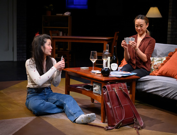 Theater Mu has mounted an achingly vivid production of Stop Kiss, playing through the month at the Gremlin Theatre, directed with staggering precision by Katie Bradley. Though the play does not identify the perpetrator of heinous violence, let alone zero in on a motive, the description of the incident absolutely sounds like the last of those cases–violence without rhyme or reason other than anger and intolerance. The play does not depict violence, though it is described in sufficiently graphic detail. Stop Kiss, however, is not only about the randomness and pointlessness of violence. It is also about love in its various permutations. It is, in a way, a contest between the two to see which of those irrational forces will prevail, at least as far in time as the playwright takes us. Son's play, which premiered in 1998, fractures its story with scenes played out of chronological order, challenging us to put the pieces together. It shows us Sara (Kelsey Angel Baehrens) and Callie (Emjoy Gavino) meeting cute, their connection being forged over the care of Sara's cat. Callie is a veteran New Yorker who loves New York even as she nears the brink of becoming a bit jaded. Sara just arrived from St. Louis where the Midwest pace, her overbearing parents, and her clueless boyfriend Peter have left her yearning for a larger life, one that feels more authentically her own. This is evidenced by the fact that she gave up teaching at a Society of Friends School in St. Louis to teach at an inner-city school in the Bronx. From their first meeting, there is a spark between Sara and Callie, beautifully realized by the two actors. The trajectory of Callie and Sara's relationship is one through-line. It has a rom-com spirit that retains its intelligence, and shows great affection for the two characters. Those pieces of the puzzle are a lark, fractured but without any sharp edges. Jagged edges appear soon enough when we learn about a violent attack on Callie and Sara while they are kissing in the wee hours of the morning, out in the open, having just left a bar in Greenwich Village. It is during this expression of love, a rush of passion and discovery, that violence lets loose by a man who sexually harasses them. When Sara returns his crass remarks with her own blunt retort, he explodes and mercilessly pummels her, his size and strength overpowering Callie's efforts to stop him. Son has been much more prolific in her career as a writer and producer of television shows than as a playwright, which may attest to her proficiency in dealing with quick cuts between storylines. Because we toggle back and forth between the grim aftermath of this attack and the almost frothy formation of a friendship that is clearly meant to be something more, Stop Kiss requires us to shift gears throughout. This might have become problematic, but Son's lucid writing and the incisive points at which she cuts away from one vein and directs us to the other, keep us on level ground throughout. Bradley's direction keeps our frames of mind from bleeding into one another, preserving the stark difference between one way of feeling and another way of feeling, which only embellishes the shocking change this random incident brings to both women's lives. Gavino and Baehrens give wholly natural performances in the lead roles. We palpably feel the thrust of friendship and desire as it knits Callie and Sara together, and the extreme change in each of them after the attack. James RodrÃguez is completely believable as a detective investigating the incident. He conveys genuine caring about catching the miscreant who did such violence to these women, but uses tough tactics, like diminishing the dignity of the women by asking pointed questions like "why would she (Sara) say that?," insinuating that Sara had some blame for egging on their assailant. Clay Man Soo, wrapping up a busy season that shows his range, plays George, Callie's longtime friend with benefits. Soo persuasively displays George's unearned jealousy as the friendship between Callie and Sara deepens. Moses Ekel is affecting as Peter, who is still in love with Sara and aims to steer her back into a future with him, while in denial of the obvious truth. Lily Tung Crystal does fine work as the good Samaritan who scares the attacker away when she hears screams from her window, and as an empathetic hospital nurse. This is the first time Crystal has acted in a Mu production after several years at the helm as their artistic director–she stepped down from that post last year to assume the same role with East West Players in Los Angeles. Erik Paulson's set provides a spot-on rendition of an apartment occupied by a young single adverse to housekeeping so that items are only picked up on an as-needed basis, while providing the flexibility to become the other settings called for in the play. Katherine Horowitz's sound design provides the disruptive stomping by upstairs neighbors that occurs like clockwork at an appointed hour, as well as the sounds of city traffic and musical bridges between scenes that feel like a ticking clock. Khamphian Vang's costume designs capture the milieu of New York in the 1990s, and Karin Olson's lighting design bathes the production in a range of temperaments. Playwright Son is of Korean heritage (though she grew up in the United States), and the original production of Stop Kiss featured actor Sandra Oh, who was born in Korea and grew up in Canada, as Sara. None of the other cast members in that production were Asian or Asian American. For this production, all of the roles except for Detective Cole are played by Asian-American actors. In a program note, Mu's new artistic director, Fran De Leon, comments on this and asks the audience to consider how this casting might change our expectations or understandings of the characters and narrative, in particular regarding the relationship between Callie and Sara. My personal response to this is that I perceived no difference–t