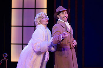 You are likely familiar with the classic 1952 MGM movie musical directed by Stanley Donen, which starred Gene Kelly, Donald O'Connor, and launched Debbie Reynolds into a starry career. You are less likely to have seen the stage production based on that movie, though it's been around for a while. It premiered in 1983 at the Palladium in London where it was a big hit, running two years, no doubt abetted by the casting of English musical theatre darling Tommy Steele as Don Lockwood, the Gene Kelly role. Betty Comden and Adolph Green adapted their screenplay for the stage. Songs from the movie by Nacio Herb Brown and Arthur Freed made the transfer as well. In fact, many of Brown and Freed's songs used in the movie had been written in the 1920s and 1930 for other properties. It was Freed's conceit in the early 1950s, when he ran a major production unit at MGM, to pull those old songs together as the basis for a new movie musical. Thus, Singin' in the Rain might qualify as one of the first "jukebox musicals." The show opened on Broadway in 1985 with far less positive results than in London. It ran for under a year and even at that, the theater was usually just half full. Whether the timing was wrong for the show to be embraced in the states, or the casting was off (it lacked a big name on par with Steele), or enlisting Twyla Tharp to direct and choreograph (a brilliant artist, but one whose sensibilities might have been wrong for this show), it sputtered out. There have been several major revivals in the England, and a 2015 hit production in Paris was rumored to transfer to Broadway, but failed to do so. The show pops up in regional, community and school productions, but certainly is not something one thinks of when conjuring names of triumphant stage musicals. After my evening in thrall of Singin' in the Rain, at Artistry, I have to wonder, why not? Oh, I know all the reasons it failed to ignite, but clearly there has always been immense potential here, and Artistry's production directed by Kelli Foster Warden, who co-choreographed with Danny McHugh, is living proof. The story is utter fluff, of course, though anchored to a real cultural phenomenon, the transition from silent to talking movies. Don Lockwood and Lina Lamont are top-ranked Hollywood stars who appear together as lovers in silent moves, bringing them legions of fans. The publicity mill has promoted the notion that their romance is not an act, and the two are a hot item off-screen. Lena, not the brightest bulb, has come to believe this publicity, though in truth Don can barely stand her. When The Jazz Singer comes out, silent movies are done-for, and Don and Lina must learn to make talkies. The problem is Lena's screechy voice and horrible diction. She looks stunning on screen, but her voice is another story. As it happens, Don has recently met and fallen in love with aspiring actress Kathy Selden. Kathy has a beautiful voice, so a plot is hatched to have Kathy dub Lina's lines. While they are at it, why not have Don, who is tired of swashbuckling, go back to his vaudeville roots and turn the movie into a musical? So, what if The Dueling Cavalier is set in the French Revolution? Egged on by Don's best friend and former vaudeville partner Cosmo Brown, they create a tap-dancing, glittery, musically ebullient movie–all with Kathy speaking and singing the lines as Lina mouths them for the cameras. Can they actually pull this off? All I will say is that the show ends with a beautifully romantic Hollywood ending, followed by the finale you could have predicted but wouldn't want to miss. For the romantic leads, Artistry has cast two performers making their Artistry debut, as well as, far as I can tell, their Minnesota debut. Danny McHugh, with national tour and cruise show credits, is a marvelous Don Lockwood–smooth, sincere, ingratiating, a top-flight singer, and a beautifully graceful dancer, at once relaxed and precise. His leaps and turns do justice to the show's Gene Kelly origins. Brittany Mendoza-Peña, with a trunkful of credits in Colorado, brings her tremendous talent to sing and dance with elegance as Kathy Selden. She endows Kathy with the spunk to make her an apt sparring partner to McHugh's Don. When the gloves come off and romance is in the air, the two have a chemistry that makes us believe they mean it when they proclaim in song, "You Are My Lucky Star." Armando Harlow Ronconi is no stranger to Artistry, having stolen the show as Ogie in last Spring's Waitress. He does more of the same here, exhibiting great song and dance chops and comedic energy throughout the show, and is absolutely fabulous in "Make 'Em Laugh." In a few numbers he and McHugh show their stuff as vaudeville hoofers, impressing us early on in "Fit as a Fiddle" and later, wowing us in the silly "Moses Supposes," a song that Comden and Green, with Roger Edens, wrote for the movie that serves no logical purpose other than to provide this opportunity for terrific tap-dancing–reason enough, I think you'll agree. Serena Brook, straight from a star turn earlier this summer in Matt and Ben, is treasure as Lina Lamont, convincing us of her vanity and having a comic feast with the character. Lina comes across as dim-witted, though she may be just crafty enough to figure out how to get the upper hand. A song added to a 2012 English production gives her a sole musical moment. That song is "What's Wrong With Me" from a forgotten show called Mean Girls (no, not the Tina Fey property). Brook delivers it with sass and conceit. Artistry stalwart Wendy Short-Hayes plays film producer R.F. Simpson with unflappable brio. Every production I traced shows this character played by a male; in Short-Hayes' performance, R.F could be a male or not, and it makes no difference, which in my mind is just the ticket. Singin' in the Rain delivers a package of great performances, fast-paced staging, terrific choreography that includes tap, a waltz, precision dancing, ballet, and mo