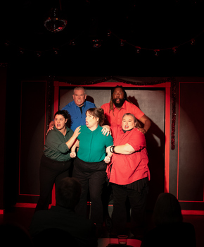 In this year's production, the satirical songs are some of the strongest material, such as the opening number, which begins as your traditional "Carol of the Bells" and descends into satirical chaos with lines referencing Minneapolis' snow emergency parking crisis ("Is it on the even or odd side?"), Chanhassen's White Christmas "Sisters" performed by the Brave New Workshop's own "gay hype squad," Belin and Neithercott, and of course the annual finale, "The Twelve Days of Christmas," which skewers all manner of holiday topics from family and neighbor relationships to the city of Minneapolis ("Please come back downtown"). No jokes are lost as everyone in the small cast is a solid vocalist with the diction to sell every witty line. Not every sketch in the first half of The Chaos of the Bells is as original or biting as some of the songs, although there are still laughs to be have in their take on a Southwest flight attendant having a nervous breakdown, the band NewSong, writers of "Christmas Shoes," only able to write songs about other kinds of footwear, and Target employees orgasming over Josh Groban singing "O Holy Night." The sketches in the second half of the production really take off, particularly an extended scene with two neighbors, played by Lauren Anderson and Rita Boersma, who discover the gift of male friendship in the most repressed Minnesotan way possible. Brave New Workshop notes that "there's something for everyone" in this production and, considering this is their 68th holiday season, they know what they're talking about. Even an uncle who is offended by Neithercott's Trump impression will get a kick out of Anderson packing up some leftovers in a Country Crock tub, and her very Minnesotan line, "I am going to need that tub back, though." Brave New Workshop's The Chaos of the Bells runs through January 17, 2026, at the Dudley Riggs Theatre, 824 Hennepin Ave., Minneapolis MN. For tickets and information, please call 612-339-7007 or visit hennepinarts.org. |