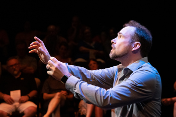 Only then do we realize that she is the host of the meal we have just enjoyed. Her invitation to dine was a decoy to bring us to what she calls "truth and reconciliation" council, listening to her account of how she, the mother of Grendel, murdered a son of heroic Beowulf as a trap meant to destroy Beowulf himself. After all, hadn't Beowulf murdered her son? Not only that, but he had desecrated Grendel's body by ripping off one of her son's arms and affixing it over the mantle like a trophy. She meant to have vengeance and justifies everything she did to achieve it. She tells us, never doubting her logic, "Sometimes it's okay to desecrate a body." Her confessional transitions into a call to arms. She steers us to ask when is it right to, as she has done, rage against power? Our host cites statistics about the relatively small number of billionaires on Earth–a few thousand–whose wealth enables them to control the other nine billion human beings on the planet. Her case for their overthrow is cogent, and her unfamiliar moral code (she is, after all, a sea hag), makes her suggestions seem, in that context, utterly reasonable. As she earlier stated, describing the futility of Grendel's efforts to argue his case against Beowulf using logic, "You can't negotiate with a mosquito." And yet, how do we come to classify human beings as mosquitoes? Feast runs about 75 minutes and Nelson holds our focus for every second. Gogerty–who is both a playwright and a comedian–fluctuates the play's tone between the raging confessions of a deranged sea hag and the bitterly funny commentary of a chatty woman who might be sunbathing in the next deck chair. An example of the latter: in her continued efforts to cast aspersions at Beowulf, she drolly announces "and get this: he's not even from here!" Nelson is mesmerizing, physically as well as mentally engaged every moment, comical one minute and raging with venom the next. When I saw the performance three years ago, I summed up my impression with "All I can say is wow!" That still holds, while the changes since then in our national dynamics make her message all the more urgent. Allison Vincent directs the piece. I couldn't begin to tell where the director's work ends and the actor's picks up, but as Vincent is a fellow veteran of Transatlantic Love Affair, I imagine their collaboration to be exceedingly fluid. Richard Graham designed sounds that add color to the spoken descriptions, such as the clatter of a noisy ale room occupied by warriors celebrating their success. Whittney Streeter designed what are called "special props," which I assume includes the sea hag's oversized glowing heart, which, she determines, causes her to love too much. Black Forest Inn is a long-standing German restaurant in the heart of Minneapolis' "Eat Street" district. It is not a typical theatre venue–it lacks stage lighting or even a stage, but so what? Dinner is served from a choice of entrees ordered in advance, with live music performed during the meal by either Scott Keever or the trio Sycamore Gap on alternating dates. Both are in the vein of Celtic/Nordic/Gaelic folk music. The plays are presented in an event space located just east of the main restaurant, which occupies the corner of 26th Street and Nicollet Avenue. Immediately south of Black Forest Inn, on Nicollet, is Glam Donuts, the shop from which Alex Pretti emerged before becoming embroiled with ICE agents while assisting a fallen protestor to get up from the street. Both sides of the street are marked in remembrance of Pretti. There could be no stronger signal as to the urgency of Grendel's Mother's message to us, teetering as she does between devilish lunacy and clear-eyed wisdom. Her message gains in meaning in counterpoint to the tale of Beowulf, also a killer, but one that has, in the haze of time and English chauvinism, been morally extolled. Feast, a Walking Shadow Theatre Company production, runs through March 29, 2026, at the Black Forest Inn, 1 East 26th Street, Minneapolis MN. A fixed price supper from Black Forest Inn is available before each performance. Tickets for the play only, without supper, are available. On Saturday evenings, March 7, 14, 21, and 28, Beowulf will be performed at 5:00 PM, before supper is served. For tickets and information, please call 612-375-0300 or visit walkingshadow.org. Beowulf - Adapted by: Charlie Bethel; Dramaturg: Sarah Heller; Director: Amy Rummenie. Cast: John Heimbuch Feast -- Playwright: Megan Gogerty; Director: Allison Vincent; Sound Design: Richard Graham; Special Props Design: Whittney Streeter; Dramaturg: Gina Musto; Stage Manager: Brian Hir; Cast: Isabel Nelson Dinner Music: Scott Keever and Sycamore Gap, alternating performances. |