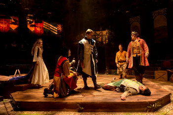 The plot, based on T.H. White's "The Once and Future King," follows the rise and fall of King Arthur's legendary kingdom. Arthur dreams of building a realm founded on justice and honor, embodied by the Knights of the Round Table. But his idealism is put to the test when his queen, Guinevere, and his most trusted knight, Lancelot, fall in love. The resulting love triangle, coupled with political betrayal and personal disillusionment, leads to the tragic unraveling of Arthur's dream and his kingdom. Toward the end of the original version of the musical, King Arthur desperately hopes his story will be remembered and asks a young boy to promise to pass it on. That powerful moment of storytelling inspired playwright David Lee to reimagine the beloved musical with a smaller cast, as if the tale were being shared around a campfire, with the focus placed squarely on the central love triangle of Arthur, Guenevere, and Lancelot. In doing so, it brings the storytelling to the forefront. With many in the cast playing multiple roles, the production emphasizes character and clarity, drawing the audience into the heart of the legend; the fact there is only one actress also emphasizes the role of Guinevere in the plot. Lee's script has the actors deliver narration directly to the audience, which helps to move the plot forward while reinforcing the feeling of a story being shared. The use of storytelling and actors playing multiple roles adds a heightened theatricality, and a brief addition to the ending beautifully ties it all together, creating an emotional connection between past and present–and between the cast and the audience–that may leave you a little choked up like it did for me. The classic songs, which feature elegant music by Alan Jay Lerner and Frederick Loewe's expressive lyrics, include "If Ever I Would Leave You," "How to Handle a Woman," and the title song and are delivered with updated orchestrations and fresh emotional resonance from Hale's cast. A few songs have been cut and the group numbers may seem lighter without having the contribution of a large ensemble, but they prove no less powerful. Lee's approach honors the original while distilling it into something more direct and accessible, particularly in the way the ensemble works together to tell the tale of King Arthur. The cast is excellent. As King Arthur, Cameron Rollins brings gentle gravitas as well as moments of heartbreak to the role, capturing the character's evolution from hopeful idealist to world-weary ruler. Guinevere is played with grace and fire by Gracie Gamble, who does a wonderful job demonstrating the character's inner conflict once she finds herself drawn to Lancelot. Zac Bushman infuses Lancelot with a huge dose of conceitedness and charisma as well as layers of vulnerability which makes the character's journey especially compelling. All three have wonderful singing voices and the chemistry among the trio is electric. The five supporting actors impressively shift between roles as Mordred (a deliciously evil Reece Harris), the three knights (beautifully played by Bennett Allen Wood, Jason Irr, and understudy Truman Regard-Whipple who was on for Joshua South at the performance I attended), and young Tom of Warwick (a bright and eager Reegan Regard-Whipple), providing energy and keeping the narrative flowing seamlessly. Cambrian James' in-the-round staging is used to great effect, drawing the audience into the action and emotion of the story. The intimate space heightens the tension of the love triangle and the personal stakes of every choice the characters make. Brielle Hawkes' costumes are richly detailed, evoking the medieval setting without feeling heavy or overstated. Avery Reagan's stunning lighting and McKenna Carpenter's beautiful set elements work together to create an immersive, almost dreamlike atmosphere that beautifully supports the storytelling. Hale's production of the small-cast Camelot is wonderful. It's refreshing to see a new adaptation that doesn't attempt to reinvent the show entirely, but rather refines and reshapes it for a modern audience. Intimate, emotionally charged, and true to its roots, this Camelot proves that the legend of Arthur and this classic musical still have the power to captivate. Camelot runs through May 10, 2025, at Hale Centre Theatre, 50 W. Page Avenue in Gilbert AZ. Tickets can be ordered at https://www.haletheatrearizona.com or by calling (480) 497-1181 Producers & Casting Directors: David & Corrin Dietlein Cast: |