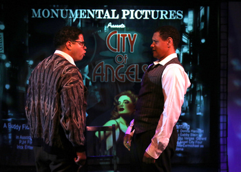 The plot follows Stine, a novelist-turned-screenwriter, as he struggles to adapt his detective novel into a Hollywood screenplay due to his ongoing clashes with domineering film producer Buddy Fidler. While Stine's fictional alter ego, private eye Stone, battles crime, corruption, and femme fatales in the world of the script, Stine's personal and professional life begins to mirror the events in his screenplay. The musical weaves a witty, fast-paced narrative that satirizes Hollywood excess while celebrating the characters and plots of film noir detective movies. The ingenious and funny yet also sophisticated book by Larry Gelbart blends perfectly with the jazzy, period-perfect score with gorgeous music by Cy Coleman and witty lyrics by David Zippel. All three men won Tony Awards for their contributions. The cast is strong, with the leads all skillfully managing the shifts in time as many also easily navigate the demands of playing dual roles. As Stone, C. J. Blankenship oozes the street smarts and charisma of a classic film noir hard-boiled private investigator who has a sharp tongue and a troubled past. Kolby Kelly brings a grounded intensity to Stine, the successful novelist turned frustrated screenwriter who has to navigate the compromises demanded by Hollywood that force him to water down the characters and events in his book for the screen. Both Kelly and Blankenship have great stage presence and strong, rich vocals that make their songs resonate. The three actresses tackling the dual roles of the women in the lives of both Stone and Stine are very good. Kori Stearns brings a lovely sense of realism to the roles of Gabby, Stine's smart, strong-willed, yet overlooked and increasingly disillusioned wife in the real world, and her noir counterpart, Bobbi, a sultry nightclub singer and Stone's former lover, whose life events add emotional weight to the detective's storyline. Although some of her dialogue is shouted with an accent that makes it hard to grasp every word, Kris McQuaid is an audience favorite in the comical roles of Oolie and Donna. Oolie is Stone's loyal and underappreciated secretary who offers sarcastic observations and heartfelt loyalty, while Donna is Stine's co-worker and lover who ultimately challenges him to confront his professional compromises. McQuaid's winning delivery of "You Can Always Count on Me" is a comic highlight. Sarah Wiechman is perfect as Alaura, the seductive femme fatale in the fictional world, and Carla, her real-world counterpart who is the glamorous actress playing Alaura in the film. All three women have impressive singing voices. In supporting roles, Peter J. Hill is fun as brash, controlling Hollywood producer Buddy, who is constantly rewriting Stine's script and asserting creative dominance. Shaylen Sparrow is great as Mallory, Alaura's mysterious stepdaughter, whose disappearance sparks Stone's investigation. She also plays the brainless young actress cast in the role, who constantly flirts to improve her career prospects. Alex Gonzalez has a lot of fun as Munoz, Stone's former police partner who is now a Lieutenant, as well as the actor who plays the character in the film. The large ensemble cast features Adam Gobeski as a crooner and Allyson Igielski, Michael Leeth, Kathie Merritt, and Suze St. John as a singing quartet who are weaved effectively throughout the show, as well as several others who play a host of quick-changing characters with flair, ensuring that the characters in both worlds of the musical feel fully realized. Peter J. Hill's direction is sharp and smart, using the limited space well. Transitions between the two storylines are executed smoothly, often enhanced by Hill's creative lighting and blocking that keeps the action flowing. The film noir aesthetic is evoked through stylish black-and-white costuming by Toya Abrams, evocative sound design by Elias Matthews, as well as the clever use of projections by Hill and Matthews that immediately grounds each scene in either the colorful 1940s Hollywood setting or the black and white film world. Hill's set design is good and minimal, but he also uses a few large set pieces that make some transitions clunky due to the lack of space to move the pieces on and off stage. While musical tracks are used, they are very good and Jay Melberg's music direction derives strong notes from the cast, although some of the vocals could be louder. Blankenship's choreography, while appropriately only used in a few numbers, is quite effective. City of Angels is a sophisticated and intricate musical that demands clarity, precision and style. Fountain Hills' production proves that you don't need a massive stage to deliver on what's required. With clever staging, strong performances, and sharp visual style, Fountain Hills brings the wit and sophistication of this smart musical vividly to life. City of Angels runs through May 25, 2025, at Fountain Hills Theater, 11445 N. Saguaro Blvd., Fountain Hills AZ. For tickets and information, please visit www.fhtaz.org or call 480-837-9661. Director/ Set Design / Lighting Design: Peter J. Hill Cast: |