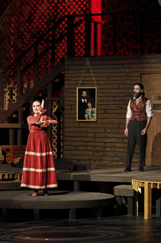 Set in the fictional Irish town of Spindlewood, the story follows Abraham, a lonely clockmaker whose daughter recently died. He misses her, so, using his clockmaker skills, he secretly builds a mechanical girl named Constance. However, Abraham has created something more than a machine, as he discovers that Constance is able to speak. Fearing being discovered, Abraham tries to keep her locked away, but the inquisitive Constance begins to explore life outside the clockmaker's shop. She befriends all she meets due to her kind and caring ways, and she soon falls in love with a young man, Will, but her presence in the town also stirs both fascination and fear. The tale unfolds like a classic legend, but the combination of the story's emotional weight with the themes of loss, overprotective parents, and a satisfying ending give it real dramatic power. The score by Webborn and Finn is a true highlight that complements the story's sincerity and intimacy. Its rich, melodic, and full of heartfelt ballads and several rousing ensemble numbers feature folk-inspired motifs. However, there are some issues with the structure and the length of the piece as well as character development, where some editing could help. For example, we know virtually nothing about how the clockmaker's daughter died, even though her loss is the reason he decided to create Constance. We also know very little about several of the supporting characters, some of whom are introduced shortly after the opening number and long before Constance is created, which seems backwards, especially since Constance is the main focus of the story. Also, the dressmaker Ma' Riley, who is the main antagonist in the piece, is two-dimensional, as are several of the other supporting characters. While the score is enchanting and varied, the fact that the musical runs 2-1/2 hours, with a fairly simple story and minimal development of several characters, also makes it feel longer, even if it always keeps your attention. The cast of this production shines, with Taylor Underwood delivering a standout performance as Constance that is both ethereal and grounded. Her Constance is a seamless combination of a mechanical being and a young, naïve girl in a performance that perfectly captures the character's innocence as well as her growing self-awareness layered with grace and emotional clarity. Underwood's singing voice soars on her many solos and duets and she creates a believable character that has authentic connections with everyone in the cast. As Abraham, the clockmaker, Derek Neumann beautifully evokes the character's quiet pain and fatherly love, along with his controlling nature, bringing depth to the story's core relationship. Andrei Igdanes is charming as Will, the young man who falls in love with Constance. Both Neumann and Igdanes have bright and warm singing voices that shine throughout. The supporting characters and the other townspeople are portrayed with warmth and nuance, creating a believable and textured community that feels both specific and symbolic. However, a few small diction issues and the use of thick Irish accents occasionally gets in the way of the otherwise lovely performances. The combination of Andrea Robertson's direction and Ken Goodenberger's rich music direction delivers rich performances, bright singing, and warm portrayals from the large cast. The creative elements feature a large, multi-tiered set design with whimsical and mechanical touches by Ryan Wentzel and lovely costumes by Sarah Houghtelin that tie directly to the story and work hand-in-hand to build the world and locations of Spindlewood. Paul Yount's choreography is excellent, with precise movements that feature quirky but fun clock-like gestures that are danced well by the large cast. The four-piece orchestra derives a rich, full, and gorgeous sound. The Clockmaker's Daughter is a hauntingly beautiful musical with a fairly simple story that speaks to the heart and casts a magical spell. With its enchanting music, interesting characters, meaningful message, and poignant ending, it's a refreshing new and original musical that deserves to be discovered. I only hope the authors make a few updates in the script to help clarify and fine tune the musical and the structure of the piece. The Clockmaker's Daughter runs through June 29, 2025, at Paradise Valley Community College, 18401 North 32nd Street, Phoenix AZ. For tickets and information, please visit paradisevalley.edu/cpa or call 602-787-7738 Director: Andrea Robertson Cast: |