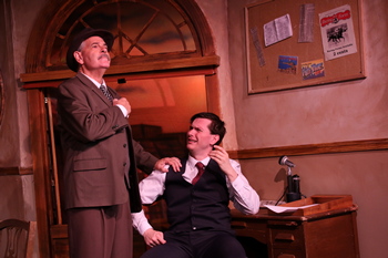 Set almost entirely in Chicago's Criminal Courts Building pressroom, the play follows Hildy Johnson, a top newspaper reporter on the verge of leaving journalism for marriage and a quieter life. His editor, the manipulative Walter Burns, refuses to let him go, desperate to keep his best man on the job. When a convicted murderer named Earl Williams escapes from jail, Hildy is pulled back into the frenzy of scoops, cover-ups, and double-dealing. As the reporters scramble to outdo one another and the politicians rush to save face, chaos and comedy collide in true screwball fashion. The cast features several good performances; however, some don't always keep pace with the breakneck rhythm that the script demands, and a few punchlines are lost to timing issues or lack of projection. Jeremy Wigley is appropriately frenzied and ruthless as Hildy, with a mix of charm, restlessness, and intelligence that captures the character's conflict between professional ambition and personal happiness. Mike Romano's Walter Burns is commanding and charismatic, skillfully manipulating everyone around him, especially Hildy, with a gleam of mischief. Their scenes together crackle with sharp timing, an abundance of wit, and verbal sparring that drive the play forward. The large supporting cast provides a colorful assortment of jaded reporters, bumbling officials, and corrupt politicians. Bob Feugate is especially good as the flustered Sheriff Hartman, while George Ellison oozes corruption as the self-serving Mayor. Adam Gobeski, Tim Lang, Henry Male, Dan Marburger, and Roger Prenger capture the rough camaraderie of the newsroom and play off each other quite well as the group of reporters who, along with Hildy, are always looking for the next big story. As Peggy Grant, Hildy Johnson's fiancée, Naomi Rusk beautifully evokes the sensible and loyal kind of woman who wants Hildy to leave the frantic world of journalism behind for a more stable life, yet knowing that he's always looking for the next big story. Valeri Tanner has a perfect stage presence and great facial expressions as Mrs. Grant, Peggy's strong-willed mother who openly disapproves of Hildy and his profession. Lauren Miller is great as Mollie Malloy, the kind-hearted but rough-around-the-edges woman who cares deeply for the escaped convict Earl Williams. Also, Harold Leboyer shines in the small part of Mr. Pincus, the hapless messenger from the governor's office. Donna Kaufman, Tom Mangum, and Zane Rodriguez add pops of humor in comical cameo roles, and Thomas F. Graca adds some humorous hijinks as the escaped criminal. Under Ross Collins' direction, the staging feels smart and purposeful. While the first act lags slightly as the play introduces its many characters and subplots before the true comic mayhem begins, once it hits its stride, the ensemble's chemistry emerges, and the rapid-fire energy the play is known for finally takes hold. Jeff Blake's set, filled with vintage telephones, typewriters, and wood paneling, perfectly evokes the pressrooms of a bygone era, while the period costumes by Naomi Rusk feature sleek suits, fedoras, and classic dresses, all of which help ground the production in its 1920s world. Though it takes time to warm up and hit its stride, and the pacing in act one and some comic beats could be sharper, The Front Page at Fountain Hills Theater ultimately succeeds in delivering a witty, engaging, and visually striking take on one of America's classic stage comedies. The Front Page runs through November 16, 2025, at Fountain Hills Theater, 11445 N. Saguaro Blvd., Fountain Hills AZ. For tickets and information, please visit www.fhtaz.org or call 480-837-9661. Director: Ross Collins Cast: (In alphabetical order) |