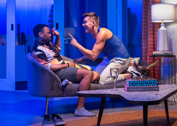 Once Curtis (Robert Rushin) is given the lay of the land by the house's owner, brassy, opinionated senior gay Bernie (Tom Reardon), and compliments him on the house's "Jonathan Adler aesthetic" (scenic design by Matt Owens), the other guests begin to make their appearance. First on the scene is Castor (Louel Señores), the loquacious long-time bestie of Curtis and the source of many of the play's snarkiest, bitchiest quips (though almost every character tosses their share of barbs). When Castor complains how hard it is to find love in the San Fernando Valley, he's reminded that even there, he's bound to get some right swipes on a dating app. "Tinder in the valley," Castor replies. "Sounds like a romance novel." As Curtis and Castor await the arrival of the rest of the group, Curtis gets the blender working for a batch of margaritas, only the first of many adult beverages which will be consumed over the course of the play's two-hour running time (with intermission). Next to arrive is Leo (James Arthur M.), the resident intellectual and queer theorist who still lives in New York. While waiting for their long-coupled friends Jeff (Mara Guevara) and Todd to make the scene, Leo, Castor and Curtis spend the day imbibing and dishing–about each other, about which of Britney Spears' albums is the best, and the transitions each is making as middle age creeps up on them all. (The characters are all in their late 30s.) Castor remarks that "people confuse me for a lesbian all the time." When Curtis–who is broad of shoulder and flat of abdomen–feels his exercise regimen will keep him looking younger than his 37 years, Leo reminds him that "no treadmill outruns gravity, bitch." Note that last word: bitch. Was it truly necessary? The line would be just as funny without it, yet it's indicative of the cutting nature of the dialogue, which sometimes adds to the humor of the show, yet simultaneously undercuts the sense of family these men have supposedly created for themselves. Though Lee has crafted some clever lines, his depiction of gay men seems to run the gamut from A to B, staying strictly within the lines of stereotypes. They dress up as the Spice Girls (to make a video for Curtis's side hustle as an influencer/content creator), adopt clichéd gay speech patterns, and seem to let their sexual urges overwhelm their sense of the behaviors that define friendship. Playwright Lee hasn't provided us with much of a story here–there's nothing specifically at stake for these characters, other than to have a somewhat debauched weekend in the desert. That they bicker with each other relates only to their history and shared experiences, as we're given nothing to draw us along other than what comes up in each moment. Lee and director Ben Villegas Randle also don't give us much indication of the passing of time, so we are left to figure out for ourselves what day or hour it is, which would help us to understand why Omar (Samuel del Rosario) suddenly appears on the scene. (We will learn Castor picked him up during a nighttime outing to Quadz, one of Palm Springs' many gay bars. There's also a reference to another real-life PS locale, the Chinese restaurant called, somewhat fittingly, Wang's in the Desert.) Despite the snappy dialogue and generally solid performances from the cast, To My Girls relies far too heavily on outdated clichés for me to recommend it to anyone other than a gay audience able to overlook its faults and simply revel in the mis-gendering, bitchiness, and occasional trenchant insight it offers. As Bernie says near the end of the play, "You don't have to stay friends with people once they become someone you don't like." To My Girls plays through June 8, 2025, at New Conservatory Theatre Center, Decker Theatre, 25 Van Ness Avenue, San Francisco CA. Performances are Wednesdays-Thursdays at 7:30pm, Fridays and Saturdays at 8:00pm and Sundays at 2:00pm. Tickets are $25-$72.50. For tickets and information, please visit NCTCSF.org or call 415-861-8972. |