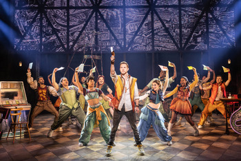 Now, if you are expecting anything vaguely Shakespearean about & Juliet, put that thought out of your mind immediately, for–other than a few offhand references to some of the Bard's well-known lines–the only things Elizabethan about & Juliet are some of the characters and the costumes they wear. And even those (designed by Paloma Young) have been filtered through a post-modern lens that gives them the look of the sort of Elizabethan drag one might wear at a hip-hop/punk-infused renaissance faire. If any show requires a willing suspension of disbelief, it's & Juliet, for the show feels absolutely zero compunction about its characters hopping aboard an open-air carriage for a 600-mile journey, showing Paris with landmarks (the Eiffel Tower, the Moulin Rouge) that didn't appear until almost 300 years after the first production of Romeo and Juliet. And that's not including the fact that we see cell phones, a DJ booth, portable music players, and headphones among other anachronistic props. All of this I can forgive in & Juliet's quest to show audiences a good time. Much of that good time comes from the music of Swedish songwriter and producer Max Martin, who recently passed John Lennon as the songwriter with the most number one hits all time, leaving him behind only Paul McCartney on that rarefied list. Even a relative geezer like me was able to pick out hit after hit over the course of 2-1/2 hours (with intermission), as bookwriter Read has arranged Martin's songs to help propel the story of Juliet's journey forward, and give her character the oomph Shakespeare never imbued her with. The show begins by introducing Shakespeare himself (played with unctuous, egotistical charm by Corey Mach) at the first performance of Romeo and Juliet. But before things can get underway, Shakespeare's wife Anne (Teal Wicks) thinks (in rather Hollywood executive fashion) that the show deserves a more upbeat ending, which she and the cast express via the Backstreet Boys' hit, "I Want It That Way." We then dive into the alternate version, finding Juliet (Rachel Simone Webb) awakening to find Romeo dead next to her, as she sings the Britney Spears smash, "...Baby One More Time. At Romeo's funeral, a host of former lovers, male and female, come to weep over his coffin. When Juliet's parents threaten to send her to a nunnery (which in Elizabethan times was slang for a brothel, but here it refers only to a convent), Juliet and her new friends April (Teal Wicks as Anne taking on a role in this new play-within-the-play) and May (Nick Drake), a gender non-binary character, head off with Juliet's nurse, Angélique (Kathryn Allison), to Paris, where the four crash a ball being held for a young Frenchman named François (Mateus Leite Cardoso), whose father Lance (Paul-Jordan Jansen) has given the lad two options: marriage or the military, neither of which appeal to him. From here the show trots along, with pop hit after hit being sung by a talented cast amid an eclectic, colorful set (by scenic designer Soutra Gilmour). As each character seeks love and connection, Martin's music imbues the proceedings with undeniable energy. "Oops!...I Did It Again," "Can't Feel My Face," "Roar" "As Long As You Love Me," and more than a dozen more recognizable tunes fill the Orpheum's vast interior. The cast is strong, led by Rachel Simone Webb's powerful presence and soaring voice. As May, Nick Drake brings a wondrously touching presence to their non-binary character. Teal Wicks plays Anne Hathaway with such vigor that it's no wonder Mach's Shakespeare is continuously cowed by her. But my favorite performance of the night might have been Paul-Jordan Jansen's portrayal of François's grumpy father, Lance. Jansen has the bulk of a heavyweight MMA fighter, but somehow manages to pull off some of the best physical comedy of the night, revealing a marvelous delicacy underneath his brawn. & Juliet is at its best when it doesn't take itself too seriously, which, thankfully, it rarely does. There is a delightful undercurrent of feminine empowerment, but it has a tendency to get a little preachy as act two drags on, and by jackhammering home what is an important message, undermines its very noble intent. & Juliet runs through July 27, 2025, at BroadwaySF's Orpheum Theatre, 1182 Market Street, San Francisco CA. The show plays Tuesdays-Saturdays at 7:30pm, and Wednesdays, Saturdays and Sundays at 1:00pm. Tickets range from $57.92-$270.03. For tickets and information, please call the box office at 888-746-1799 or visit broadwaysf.com. For information on the tour, visit andjulietthemusical.com. |