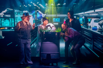 When you enter the Oasis, stop first at one of the bars to get yourself a Jurassic-themed cocktail–perhaps a Prehistoric Punch, an Electric Fence or a Clever Girl–and then find your way either to your seat in the VIP Splash Zone (ponchos provided, but they never let fly with anything more than water or silly string) or stake a standing place in front of the center stage that, at the show's open, is shrouded in black cloth festooned with the word "caution." Soon, host Muldoon (Evian) greets you and, in his outrageous Australian accent, warns you (saying "I'm not gonna beat around your bush" in the first of many double entendres) of the dangers to come. His welcome speech is interrupted by a trio of raptor-costumed dancers/singers giving a rendition of Destiny's Child's "Bootylicious," who then dance through the audience, giving all a chance to appreciate their scaly tights and raptor headdresses. But the real host of the night is Colonel Sanders Hammond (Vanilla Meringue), outfitted in a sparkly version of the white leisure suit worn by by Sir Richard Attenborough in the film, complete with fake beard and amber-topped walking stick. The Colonel guides us along as we sort of follow the arc of the film. We meet the scientists who are there to inspect the facilities: Dr. Laura Dern (Elenor Irene Paul) and Dr. Jeff Goldblum (Marshall Forte), who arrive on the island via a helicopter cleverly constructed from pool noodles, as the cast sings a parody of Green Day's "Welcome to Paradise," and remind us "they're not extinct, not anymore" since "we're playing God and we don't give a fuck." There's a hysterical send-up of the famed welcome video from the film in which the Hammond character talks to his on-screen counterpart–but which quickly devolves into name-calling and physical violence. When the scientists learn that all the dinosaurs are genetically engineered to be female, the cast breaks into a parody of Shania Twain's "Man! I Feel Like a Woman!" as they watch as a baby dinosaur hatches from an egg on the main stage. True to the film, nothing goes quite as planned for Colonel Sanders Hammond. After all, "what could go wrong warranting seven additional movies over 30 years?" I could go on, but the meager plot isn't the point here. No, the point is about the non-stop over-the-top silliness, ribaldry, sexiness, and wondering if Dr. Jeff Goldblum will everl get to explain what chaos theory is, though not from lack of trying. Or how many times the cast will make sure the very fit Forte will be forced to reveal his taut pecs and six-pack abs. (Once, when mildly injured, Dr. Laura Dern rushes in to provide first aid: "Let's get your shirt open right away!") I've barely begun to address even a tenth of the wonderful ridiculousness (and use of butt plugs and dildos and swinging tassels on the breasts of Edie Eve as Mizz DNA, or the wondrous vocalizations of the "fegosaurus") that had a smile on my face throughout the two-hour or so running time. But perhaps the best thing about Jurassiq Parq is the undeniable joy the cast takes in presenting the show. No one holds back or is anything less than fully committed to the outrageousness of the show (written and directed by Michael Phillis). That joy is transferred to all of us in the audience, joy summed up as the cast and–as far as I could see–every member of the audience joining in the singing of Four Non Blondes' "What's Up?" at the show's end. The song's chorus asks, "what's going on?," and you may wonder that yourself over the course of the evening, but it's better to just join this thrill ride of camp and let the beast inside run free for a couple of hours. Jurassiq Parq - A Musiqal Parody runs through August 2, 2025, at The Oasis, 298 11th Street, San Francisco CA. Performances are Thursdays Saturdays at 6:30pm. (The bar stays open after for more fun.) Tickets are $57.33 (standing room) - $82.95 (VIP seating). For tickets and information, please visit www.sfoasis.com. |