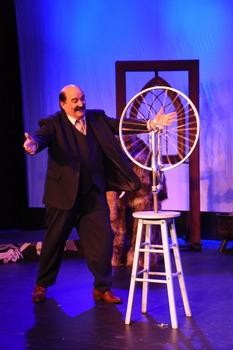 For the second show of the company's 105th(!) season, they have chosen one of the most unusual, boundary-breaking works of theatre ever written, Thornton Wilder's The Skin of Our Teeth. Rather like some aspects of James Joyce's novel Finnegan's Wake (to which the play has been compared, notably by the late scholar Joseph Campbell), The Skin of Our Teeth takes audiences on a wild ride across three acts, multiple millennia, biblical references, cycling back on itself more than once in ways that are both confusing and engaging. Each of the three acts focuses on a different cataclysmic event: an ice age, a global deluge, and a seven year's war. The story, such as it is, revolves around the Antrobus family (Antrobus being derived from the Greek for "human") and their struggle to survive in a world that seems bent on destruction of one sort or another. George Antrobus (Glenn Havlan) is the father, and an inventor. In Wilder's creation, George works at an office in the city where he comes up with a variety of "inventions": the wheel, the alphabet, multiplication tables, and beer, among others. His wife Maggie (Michele Sanner Vargas) stays at home, struggling to keep a fire going for warmth against an advancing sheet of ice working its way down from Canada, and watching over their two children, Gladys (Arya Safavi) and the hyper-kinetic Henry (Dominic Marco Canty). (Despite its rather innovative dramatic structure, The Skin of Our Teeth was written in the early years of WWII, and the gender roles reflect that era.) She also keeps an eye on the family pets, a dinosaur (Kevin Allen) and a wooly mammoth (David Cole). The costumes for these two (by Lyre Alston) are adorable, as are the performances, especially Cole's charming elephantine trumpeting. Their maid, Sabina (Nicole Thordsen), smashes the fourth wall to smithereens, regularly speaking directly to the audience and the technical crew. In Act Two, there's a a massive storm on the way, and George has recently been elected president of the Ancient and Honorable Order of Mammals, Subdivision Humans. Sabina has been transformed into a beauty queen, Ms. Atlantic City, who seduces George, evidently breaking up the 5000-year marriage between him and Maggie. Act Three sees the family emerging from hiding after the war; George and Henry have been off fighting, though on separate sides, making for some tense conflict when both return to the family home, with Henry covered in blood, eyes weary from the carnage he has evidently seen and inflicted. A play this experimental–and downright wacky–requires total commitment from its cast (and director, in this case, Nic Moore) or it risks descending into pointless silliness. Fortunately, the cast assembled for this production have clearly fully embraced the craziness, to the delight of the opening night audience. Glenn Havlan's George is appropriately imperious, but there's a speech in Act Three where he seems to shed his authoritarian skin, revealing a gentler self. It's almost as if Havlan's George had himself been acting, then leaves aside the role he was playing to become suddenly, vulnerably human. It's a wonderful, touching moment. The entire cast are fully committed to their roles, but Dominic Marco Canty deserves special recognition for the boundless energy and boyish enthusiasm he brings to the role of Henry. Though a more subtle performance, Nicole Thordsen's Sabina serves as a sort of lodestone for the play, guiding us through its weirdness, and Thordsen is to be commended for her easy transitions between the different aspects of the role. The action takes place on a set designed by Michael Walraven, with painting by Cindy Morris and Kristy Arroyo which references Picasso's masterwork "Guernica." (Though "Guernica" is realized only in black and white and shades of gray, Morris's and Arroyo's work is in color.) The production is also aided by the sound effects created by Bruce Vieira and Nic Moore, with sound design by Sound Logic, Inc. Rather like Wilder's other classic play, Our Town, The Skin of Our Teeth upends dramatic expectations. And though it demands attention and thoughtfulness to be fully appreciated, it rewards audiences who fully engage with the show with a thrilling dramatic experience. The Skin of Our Teeth runs through February 15, 2026, at Novato Theater Company, 5420 Nave Drive, Novato CA. Shows are Fridays and Saturdays at 7:30 p.m., and Sundays at 2:00 p.m. There is an additional matinee on Saturday, February 7 at 1:00p.m. Tickets are $37 general, and $25 for students/youth. For tickets and information, please visit www.novatotheatercompany.org or call 415-883-4498. |