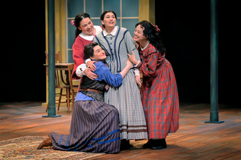 Playwright Lauren Gunderson was already well entrenched in mining 19th century literature by adapting works of a female novelist with her theatrical trilogy based on Jane Austen's novels. She then received a commission to write a stage version of "Little Women," a novel which has never been out of print in the century and a half since its publication. Co-commissioner (with City Theatre Company in Pittsburgh, Northlight Theatre in Skokie, and People's Light in Malvern, Pennsylvania) TheatreWorks Silicon Valley offers its version of the new work, now enjoying a rolling premiere. The script stays generally true to the author's intentions, and the production is professional in all respects, resulting in a lively, poignant, and delightful rendering of Alcott's semi-autobiographical work. Since it takes place during the Civil War, a period of political division, and since there is a scarlet fever epidemic, parallels with current times are unavoidable. First, some context that influenced her life and writings. Louisa May Alcott grew up largely in Concord, Massachusetts in a family of four girls, one of which, like Beth March, contracted scarlet fever (sound familiar yet?). As a child, Louisa's mentors included her parents' friends Henry David Thoreau, Ralph Waldo Emerson, and Nathaniel Hawthorne. In addition to these obvious literary influences, her persona was defined by the isms to which she subscribed: feminism, abolitionism, suffragism, and prohibitionism. Like Jo March, the sister in the novel who is her surrogate, Alcott sought independence of mind and action outside the home, having become a nurse in the Civil War. She eschewed marriage, or perhaps it eschewed her. Since this is not the first stage adaptation of the novel, what would be Gunderson's point of differentiation? Her version uses two devices that elaborate on the action and make up for the condensation of a long novel into a short play. First is that Elissa Beth Stebbins, who plays Jo, also plays Alcott as a narrator who gives overall perspectives and a modern look at the story. One modernization that may be more in the direction than the writing is that Jo comes across as more masculine, even insisting to take the man's part when dancing with Laurie. He is correspondingly more effeminate than Alcott may have intended. The other alteration is the extensive use of parenthetical commentary spoken directly to the audience. This occurs in several forms. Personas share their inner thoughts, reveal subtexts of the action, advance the plot, and even provide stage directions. Some viewers will find this annoying. I appreciate the conceit for taking the story deeper with efficiency, and I hope others do as well. Little Women succeeds for many reasons, starting with the strong delineations among the sisters. From the eldest to the youngest, Meg (Emily Ota) is the prettiest but also a disciplinarian like a second mother. Jo (Stebbins) is the tomboy and free spirit, bound to set out on her own and succeed on her terms. Beth (Lauren Hart) is shy, loving, and musical. And finally, Amy (Sharon Shao) is ebullient, opinionated, and self-interested like Jo. Jo is at the center of the narrative in her struggles to become her own person through her writing, which she hopes to publish. At a party, she stumbles upon another misfit, Laurie (Max Tachis), as they are both hiding to escape the social demands of the event. Unlike the Marches, whose financial condition is modest, Laurie's family is their rich neighbor. Jo becomes Laurie's romantic interest, but she will come to like him only as a friend. While Father March is away at war, the family suffers financially but is held together spiritually by their nurturing and kindly mother (Cathleen Riddley). Indicative of her goodness is the insistence that the family donate their meager Christmas breakfast to the truly poor. While Riddley does a noteworthy job as the mother, she excels when she chews the scenery playing Aunt March, with her "my way or the highway" dealing with her poor relatives. Although Little Women is told from a female point of view, Alcott is very kind in her depiction of male figures, not always the case in feminist perspectives. Laurie is a generous and loyal figure. In addition, George Psarras plays two different academics, both of whom develop romantic interest in a March sister. They are each seen not only as scholars, but as empathetic and helpful persons. Perhaps the author was channeling the mentors of her youth. Reducing a novel with scores of characters to a play with a cast of seven actors is quite an accomplishment. Gunderson and director Giovanna Sardelli do a magnificent job in bringing narrative coherence to the stage. All of the actors shine, with Stebbins and Tachis in lead roles particularly stepping up. The other special performance is Sharon Shao, who brilliantly captures Amy's youthful exuberance as well as her clashes with Jo, who she is so much like. Staging presents another challenge, and here, the decision was to go with one set which expressly represents a great room in the March home. A little imagination is required to fill in the blanks for other venues, but it's no big deal. This play is an endearing portrayal of life from another time. Generally, it moves briskly, but there are occasional drags. As far as the topic matter, the sweet spot in the market will be for girls and women of all ages, but men with broad tastes will enjoy it as well. Louisa May Alcott's Little Women, runs through October 12, 2025, at TheatreWorks Silicon Valley, Mountain View Center for the Performing Arts, 500 Castro Street, Mountain View CA. For tickets and information, please visit theatreworks.org. |