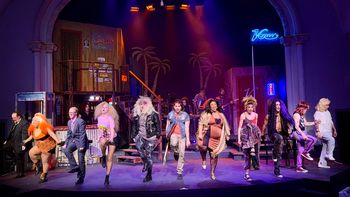 But we're all Hungarians in the theater, especially when it comes to jukebox musicals. Case in point, Rock of Ages, the pastiche of 1980s glam-rock ballads and anthems, all worked into a simple but effective story. It's funny, beautiful, and undeniably iconic in a new revival at Stray Dog Theatre under the direction of Justin Been. What he and Artistic Director Gary F. Bell add to it, in terms of cast and crew, and coaxing out all oceans of great singing and humor, makes this "stolen chicken," of repurposed heavy-metal music, feel freshly hatched from the egg. I have to credit music director Mallory Golden next, because this two and a half hour concert with comedy (and a 10-minute intermission) sounds great in every famous song. But coming in right behind her for wit and creativity is choreographer Mike Hodges, who actually gives us about 110%, in terms of stage movement. Cliched rock band gestures and poses come as winking embellishments in this show, rather than the substance of it. Between Mr. Hodges and director Been, your eye never stops traveling. And thanks to Ms. Golden and her singers, our ears have suddenly learned to listen to what had formerly seemed like so much sound and fury. Chris D'Arienzo wrote the libretto for Rock of Ages, where boy meets girl and somebody's dream is going up in smoke, and the whole town (the Sunset Strip in Los Angeles, circa 1987) must come together to make things right again. The term "rock opera" suddenly seems to apply on multiple levels. A hundred years from now they'll be doing it at Lincoln Center with great reverence. What am I talking about? They'll probably be doing it at the Kennedy Center next season! But here it has wonderful singing, and layer upon layer of whimsical irony. So why wait? In any case, the stage musical is now almost 20 years old, opening first in Los Angeles in 2005 (at King King, and then moving to the Vanguard Hollywood) before a production Off-Broadway in 2008 (at New World Stages), and then on to the big time, at the Brooks Atkinson Theatre and subsequently the Helen Hayes, where it completed a New York run of over 2,300 performances, all with the musical arrangements and orchestrations of Ethan Popp. The source music is from David Lee Roth, Steve Perry, Journey, Styx, Twisted Sister, and all the groups we thought were far beneath us in college radio, when punk towered over us in the '80s. But now, it's really not too loud at all for someone in their dotage. In fact, in this production, it's strangely, deeply beautiful. I don't know if Rock of Ages would be as magical with a lesser cast, though. Dawn Schmid is (once again) indescribably hypnotic as Sherrie, a girl from Kansas. Here she's done-up in weirdly iconic, very high hair, and make-up and highlights that show off particularly well under Tyler Duenow's lighting. Sherrie falls for a bar-back in Los Angeles, Drew (the always-great Drew Mizell). The equally phenomenal Clayton Humburg plays the washed-up hard rocker Stacee Jaxx (Tom Cruise in the 2012 film adaptation) and provides a lot of dynamic chorus backup work as well. Jeffrey M. Wright adds exactly the right amount of bemused realism as the owner of the rock and roll bar that's about to meet the wrecking ball. And Bradley Bliven is excellent as his assistant Lonny, who's also the show's comically theatre-literate narrator. Sarah Polizzi is ingeniously funny as Regina, a protestor fighting to save DuPree's Bourbon Room. Jade Anaiis is wonderful as the owner of a local strip club, and elsewhere as the mayor. Luke A. Smith and Jacob Wilkinson are exceedingly thoughtful as a couple of German developers invading the nightclub scene. And there's great work as always from Sara Rae Womack, along with slinky Ruben Medina-Perez and the ebullient Corrinna Redford. You'd need a scaffolding to ascend all the big teased-up wigs on stage provided by Sarah Gene Dowling, on a compact but impressive set designed by Rob Lippert. The great costumes are by Colleen Michelson, with hilarious DayGlo spandex workout togs in act two. And "radical ragsmith" KD Brockfeld does the artful ripping on most of the singers' costumes, which we enjoy throughout. Glam rock suddenly possesses a torrid kind of beauty I never really appreciated, growing up. Which makes me look back more kindly on it now, all of a sudden. All these years later. Rock of Ages runs through April 26, 2025, at the Tower Grove Abbey, 2336 Tennessee Ave., St. Louis MO. For tickets and information, please visit www.straydogtheatre.org. Cast: Dance and Chorus: Ruben Medina-Perez, Corrinna Redford Production Staff: |