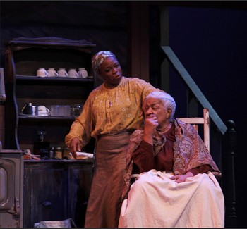 More than one attempt to force great changes of life turn Pearl Cleage's Flyin' West from a homespun homily to a memorable suspense story in just about two and a half hours. The setting is rural Kansas in 1898, in this lovely fact-based drama staged by the The St. Louis Black Repertory at the Kirkwood Performing Arts Center. The action follows a group of freed slave women who've bought low-priced land out on the prairie. But, even there, the world is full of ambitious people. The show first premiered in 1992 at the Alliance Theatre in Atlanta, and Ms. Cleage's script has tons of warmth and humanity, along with several elements of melodrama. But those are steadied by the firm realism and honest emotion instilled by director Jon Royal in his production. Real life is melodramatic enough in this play, which also comes equipped with lots of nice little laughs and genuine heartache. Jim Crow laws have made the South intolerable all over again for a group of newly minted frontier women after the Civil War, including Sophie, played by Margery Handy, steely-eyed and toting a shotgun with her whenever she goes outside. And I don't know for a fact that the awesome Renee Lockett actually needs a new hip, but she does seem to carry the weight of the world on her back as Miss Leah, an older freed slave who convalesces at Sophie's western ranch home. The women now live near the remote town of Nicodemus, Kansas, and their survivor's circle includes Fannie, played with lighthearted charm by Jazzma Pryor. "Nothing makes any sense without children," she sighs hopefully, though their shared past experiences as slaves, bought and sold and bred in Memphis, seem to belie her faith. Having children before emancipation only added to their nightmare, as we learn here. But soon they'll be joined by Minnie, Fannie's youngest sister who's expecting a baby of her own with her husband Frank, a poet. They had been living in London, a far cry from this sea of grass. On Chris Cumberbatch's set there's an air of vulnerability to the Kansas heat and winds, outside a dream-like house of frame and mesh, featuring a great old antique stove. And there's high quality lighting by Essie Clair Winston and sound by Justin Schmitz. In the cast, the teenage Minnie is played by the always-excellent Christina Yancy, and the super-smart Aaron Allen is great as her tall and slender husband Frank. He brings a perfectly stylized, patrician elegance to the stage and seems to tower over the women, intentionally. Reginald Wilson is warm and opens our hearts as another settler, Wil Parrish, who hopes to pair off with Fannie. In his own way he's as worldly as Frank, having lived in Mexico, though the results of the their adventures are completely different. Michele Siler's costumes are quite lovely, especially Minnie's large flower-covered hat and matching dress and shawl, and Frank's suit, in the London style of the time. Frank is maddened by a stolen inheritance, and longs to return to the glamor of the great city. Drama comes along with the arrival of land speculators, as the westward spread continues. Fannie and Leah have a long-standing debate over the power of history. The younger woman writes it all down, and the older woman fears that robs her of the power of her own acquired wisdom. And one of them does seem to win that debate in an ending that glows with the power of the ages. But before that, the whole thing turns to Hitchcock in the second act as a shocking plan is hatched, and murder becomes patron to a play within a play. Out in the real world, as expected, there was a very windy storm during the performance I attended, and peoples' phones were squealing all around the house with modern alerts nearly two hours into this fin de siècle story. Unexpectedly, about 75 more people from the adjacent studio theater were herded in for safety, filling out the mainstage orchestra section for the final 40 minutes (factoring in a ten minute storm hold). Fortunately, it's all just formulaic enough to make sense to newcomers, even at that late stage of the game. And near the very end, a long, deep rumble of the storm weighed against the roof overhead, as the villain was getting his just desserts. "That was a great special effect!," I whispered to the person sitting next to me, who laughed in agreement. Flyin' West, produced by the St. Louis Black Repertory Theatre of St. Louis, continues through March 29, 2026, at the Kirkwood Performing Arts Center, 210 E. Monroe, St. Louis MO. For tickets and information, please visit www.blackrep.org. Cast: Production Staff: * Denotes Member, Actors' Equity Association |